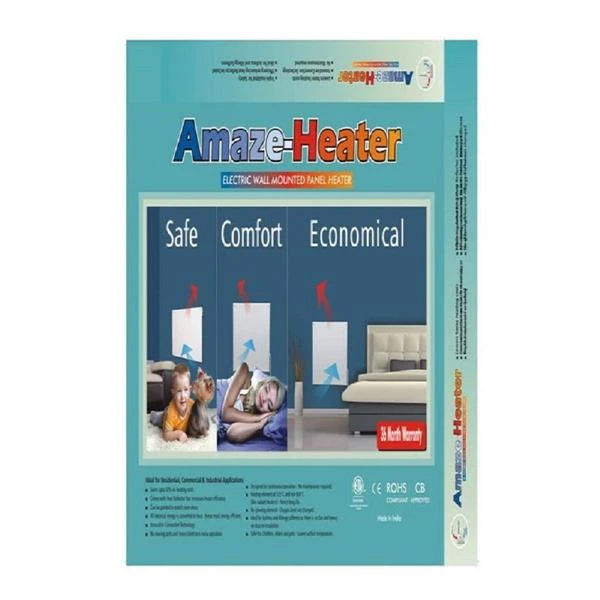 This 600-watt, 120-volt, wall-mounted panel heater is safe, economical to use and works based on the principle of convective heat transfer. This panel is mounted on the wall to create a convection channel using the hardware provided and requires a simple do-it-yourself installation. The hot air rises and gets displaced by cooler air creating convective air currents within the room that gradually move warmer air to achieve a uniform ambient temperature. The Amaze Heater does not have a built-in fan; therefore, there is no noise and no stirred-up dust. This eliminates airborne dust problems and it is ideal for people suffering from asthma or allergies. This heater is ideal for a regular-size room up to (250 sq. ft.). This unit is perfect not only to provide additional heat but also to warm up any cold spots in the house. It can be painted with latex paint to match any decor.