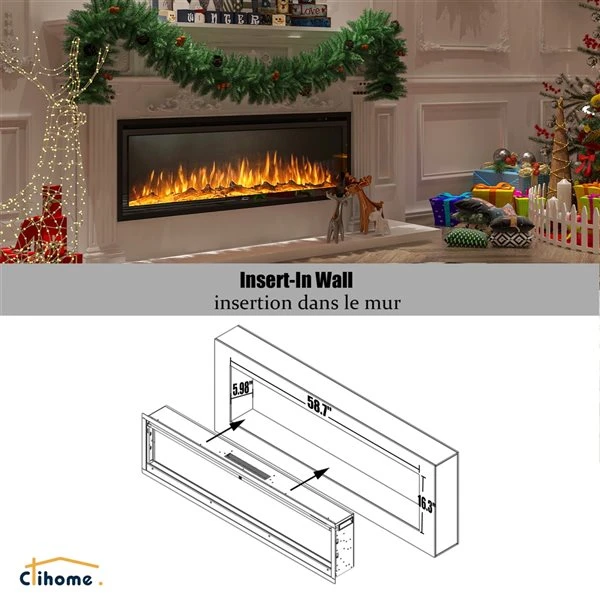 Be the first to review “Clihome 60-in Black Fan-Forced Electric Fireplace With Remote Control” Cancel reply