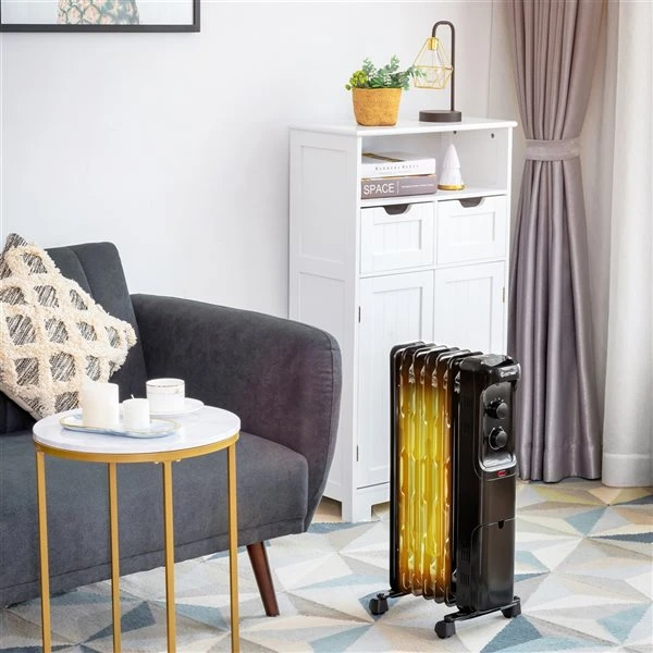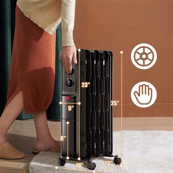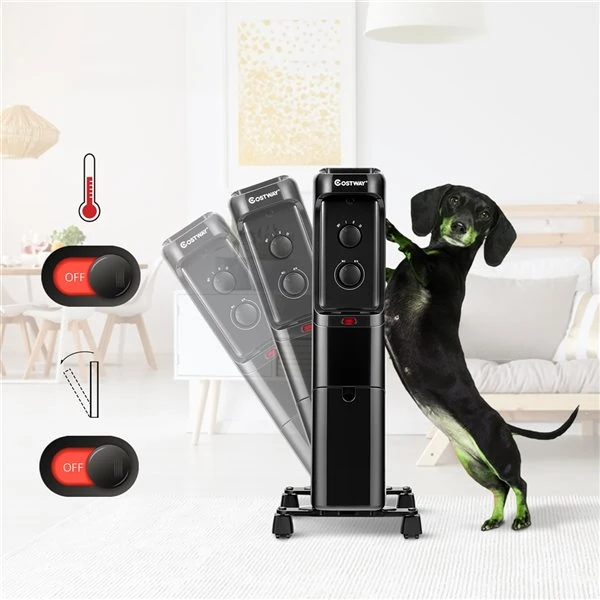 Costway 1500 W Oil-Filled Radiant Utility Indoor Electric Space Heater Thermostat In Black
