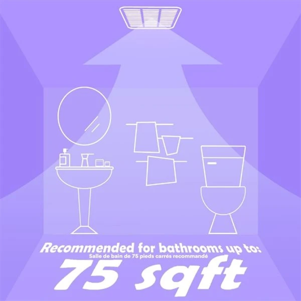 - Recommended for bathrooms up to 75 sqft (8-in ceiling)
