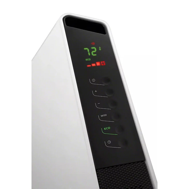 - De’Longhi electric space heater in a flat panel design provides soothing warmth in any room