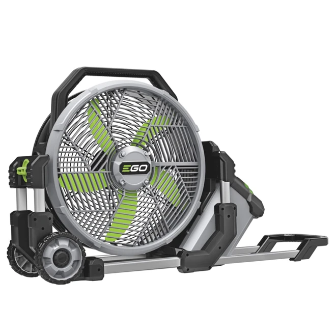Discover the EGO POWER+ 18-in powerful cordless misting fan. With air speeds of over 20 MPH, this fan has double the airflow of a standard 20-inch box fan. It has 5 different speed settings to allow you to adjust air flow to your liking from 1,500 CFM to 5,000 CFM for ultimate control. With its telescopic handle and durable wheels, it offers the advantage of superior portability. Bring it to sporting events, tailgates, beach days, patio hangouts, and more! Ideal for cooling down indoor and outdoor environments with quiet operations of just 42 dB on speed 1. Simply drop the intake filter in a bucket and select from 2 misting modes to cool down an area equivalent to a large entertainment patio of 540 square feet. Stay cool longer with up to 60 hours of battery run time. Compatible with all EGO POWER+ ARC Lithium batteries (available separately) to deliver Power Beyond Belief.