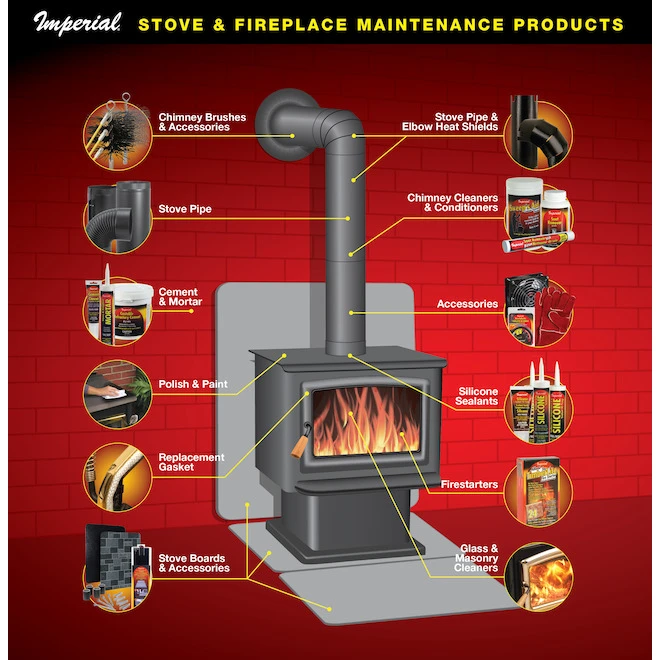 The Imperial® fireplace window tape kit prevents smoke leakage. It fits most wood and coal stoves, measures 5/8” x 1/8-in x 8” and includes (1) ounce of glue.