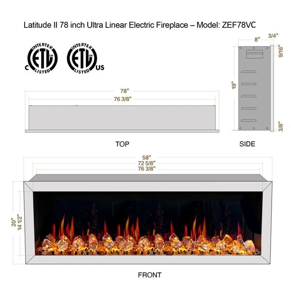 Enjoy a cozy night at home with this electric fireplace heater. With real flames and a planked design, this smart electric fireplace insert can heat up to 400 square feet of your home. Additionally, it features remote controls for an easy operation, or you may enjoy the realistic flames that stay on until you decide to turn them off. It is beautifully crafted with smaller spaces in mind so it can fit in rooms such as your living room, den, or any other space at home. Litedeer ZEF78VC Latitude 78-in smart electric fireplace with app, lifelike real flame, adjustable fire crackle sounds and sparkles, amber glass décor and remote control included.