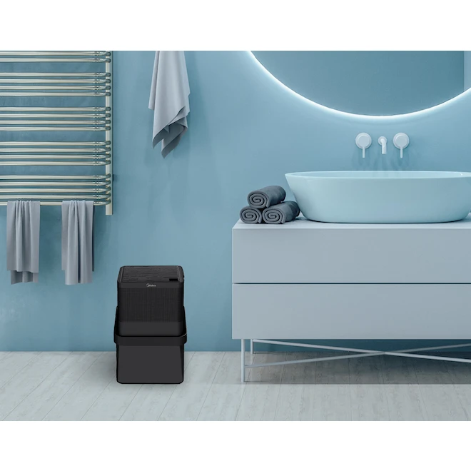Keep the moisture levels in your home under control with the Midea dehumidifier. Keep the upper portion nested inside the lower for space-saving storage and then lift and twist when ready for use. The tank holds up to 35 pints, meaning longer run times and fewer trips to the sink. Control and adjust the 2 speed dehumidifier from anywhere using a Smartphone or voice control.