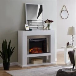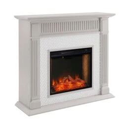 Southern Enterprises Brixven 45.5-in W Oak With Faux Slate Tiles Fan-forced Smart Electric Fireplace