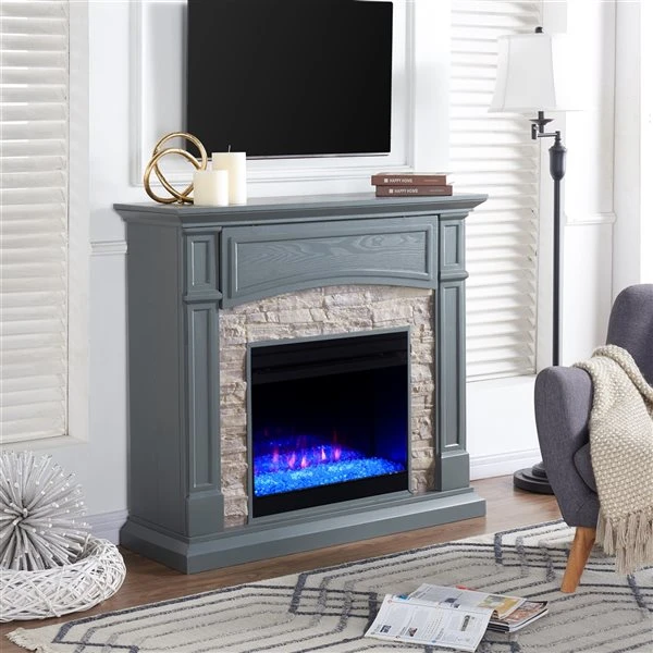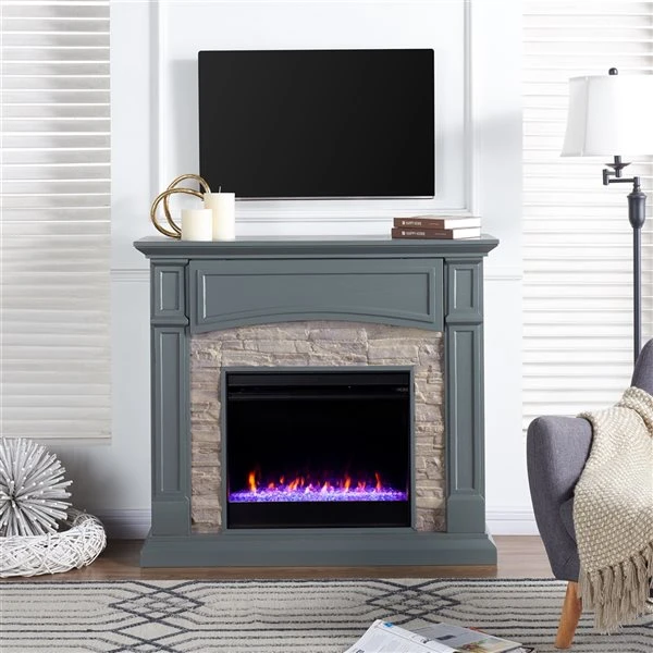 Southern Enterprises Prisene 45.75-in W Grey With Weathered Stones Fan-forced Colour Changing Electric Fireplace