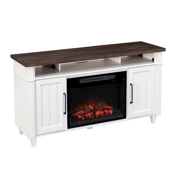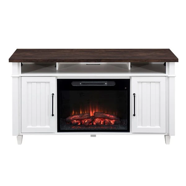 Sunjoy Oxley 60-in W White/Brown TV Console With 4777 BTU LED Electric Fireplace