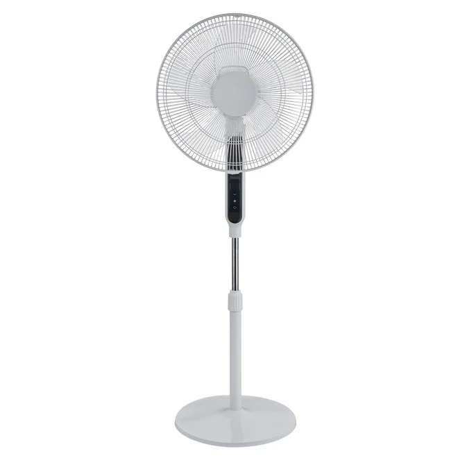 This 16-in stand fan by Utilitech offers 12 hours programmed timer. It also features also a LED digital display and remote control. Warranty limited 1 year.