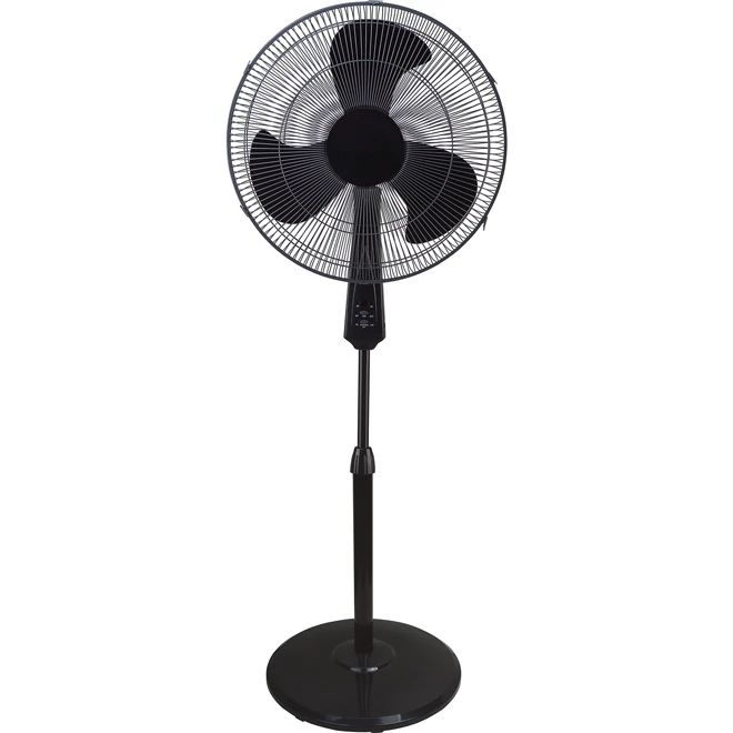 The Pelonis oscillating stand fan circulates the air indoors for a more comfortable environment. Featuring 3 fan speeds, the high quality blades are designed for quiet operation. The control panel with LED indicators and timer function is easy to use and for added convenience use the remote control from across the room. The adjustable stand, tilting fan and 85 degree oscillation from left to right, moves air for a powerful cool.
