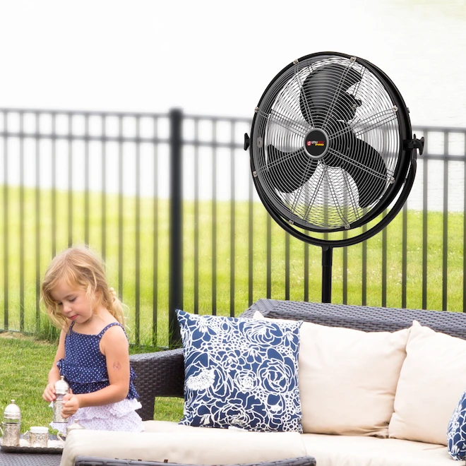 The Utilitech high velocity pedestal fan is equipped with an enclosed motor rated for outdoor use. Made of durable steel, its highly efficient motor and blades make a more significant airflow. It offers 3 speed settings and a convenient vertical tilt of 180°. UL listed and backed by a 2-year warranty.