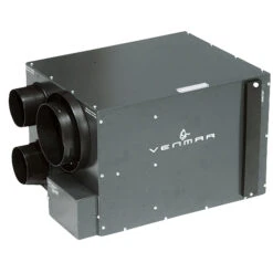 Keep air fresh and circulating with this Venmar EA1500 air exchanger. It purifies stale air by using a washable aluminium mesh filter that captures many allergen particles. The unit not only exchanges inside air for fresh air from outdoors, but also reduces humidity and condensation. This Venmar air exchanger is well suited to spaces up to 2,000 sq ft in size, and it’s easy to install. It also offers multiple modes to choose from. Set the exchanger to minimum, maximum, or recirculation to meet your home’s needs. A maintenance light lets you know when the device requires attention. The unit moves air at up to 185 CFM (cubic feet per minute).